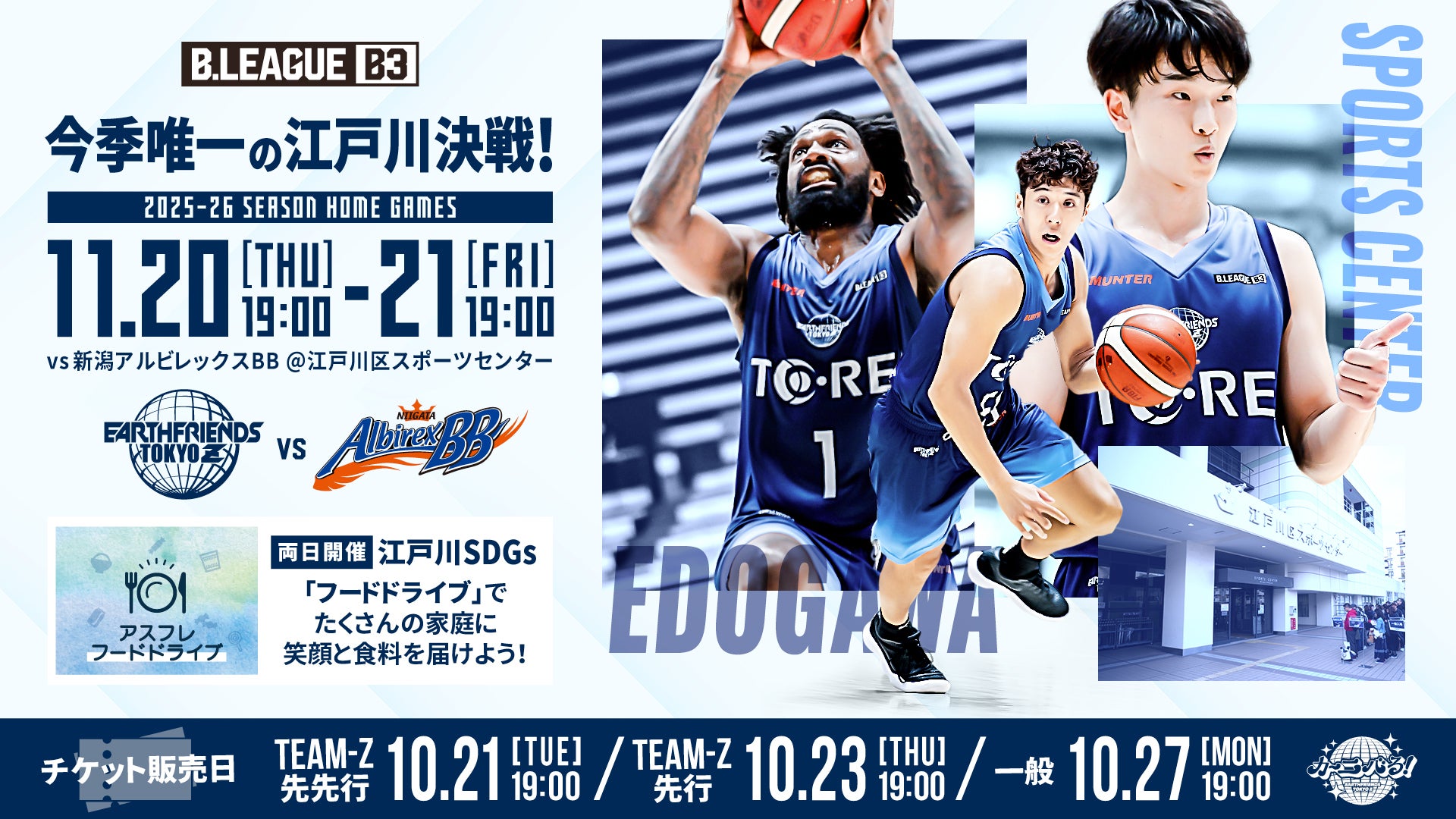 11/20(土)・21(日)は新潟アルビレックスBB戦!【アースフレンズ東京Z / 第9節】